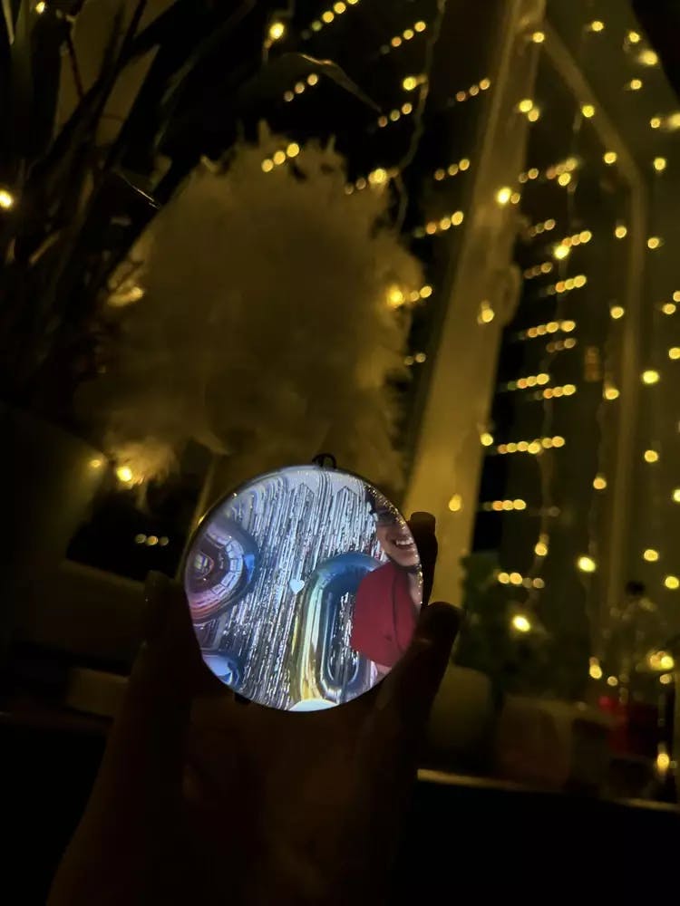 Wyobraź sobie ten moment: przygaszone światło, romantyczna muzyka w tle, a Ty wręczasz ukochanej osobie małą, elegancką bombkę. Ona ją włącza… i nagle pojawiają się Wasze wspólne zdjęcia, filmiki, uśmiechy, podróże, czułe chwile.